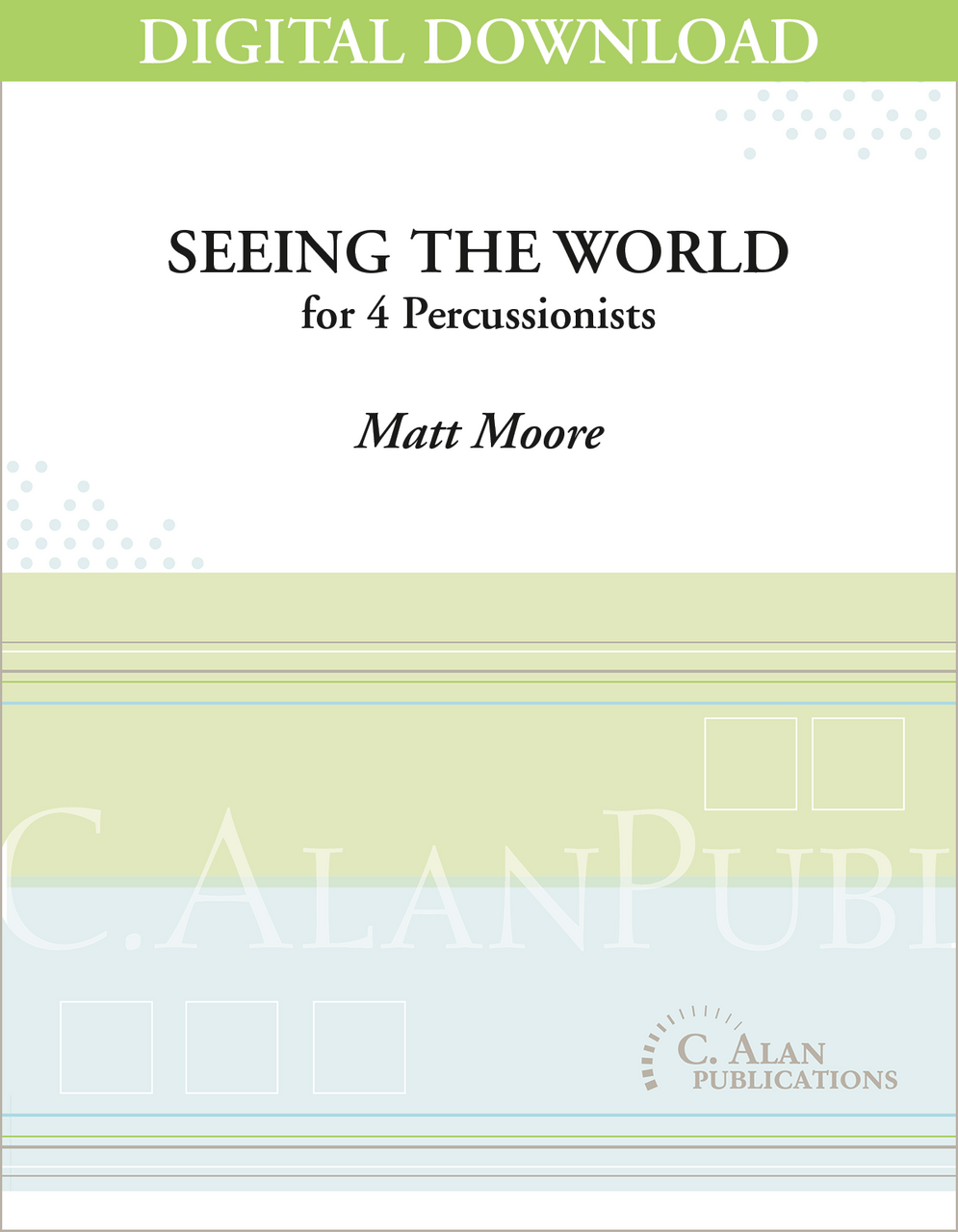 Seeing the World was written to be an accessible, yet musically rich intermediate-level marimba quartet. Four players share two 4.3 octave marimbas, allowing the piece to be performed by those with limited instrumentation. The piece is constructed around a single sticking pattern and has few changing notes per measure, so performers can quickly get past the note-learning phase and start having fun and sounding good!