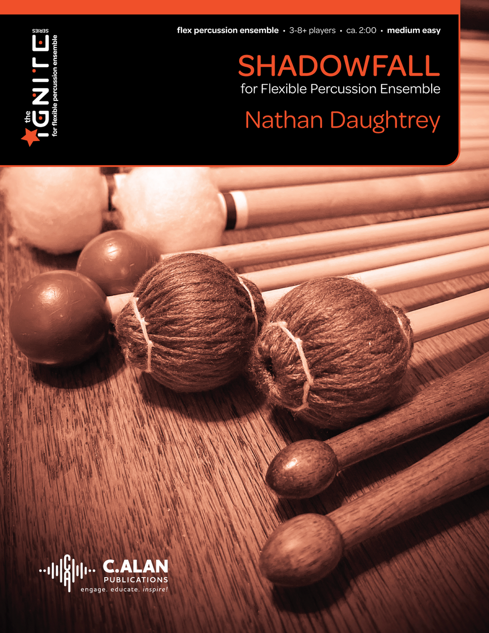 Inspired by albums by London-based producer Al Wooton, Shadowfall pieces features heart-thumping grooves that get passed around the ensemble. The easy-to-digest syncopation will make younger players sound like professionals in no time