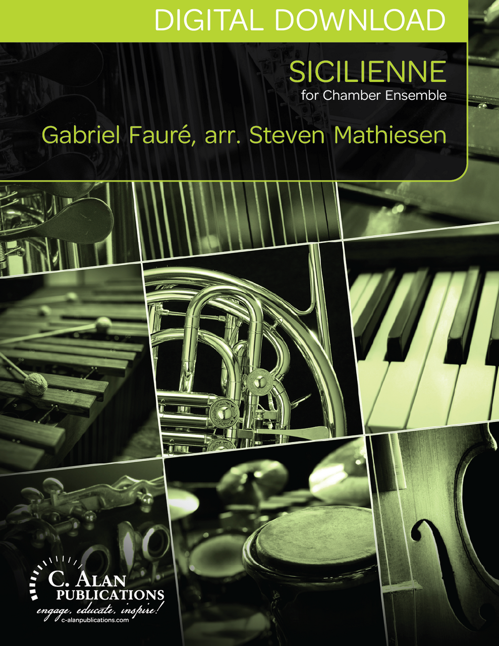 Are you looking for chamber music combining keyboard percussionists and woodwind instrumentalists? Sicilienne by Gabriel Fauré is such a work. Its beautiful, lilting melody is sure to captivate performers and listeners alike.