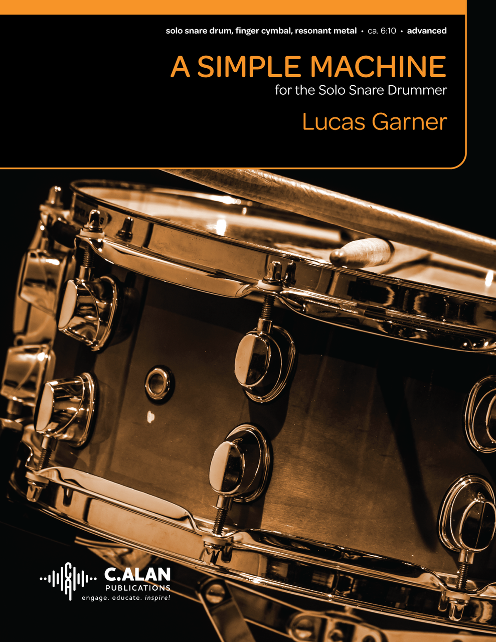 A Simple Machine is a unique solo for snare drum, finger cymbal, and resonant metal that explores the process of creating and inventing at its core. By exploring the fundamental machines that we all use in daily life, Garner realized that musical ideas in their purest forms often function as these devices in the context of musical compositions. As such, you will find "simple machine" graphics—wheel, screw, lever, inclined plan—throughout the score