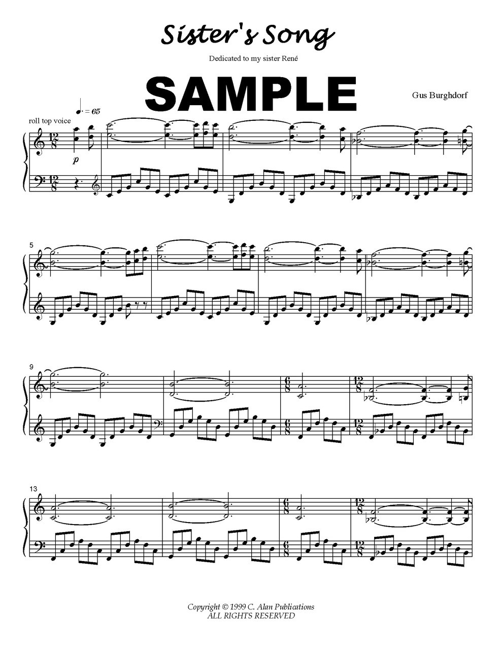 Dedicated to the composer's own sibling, Sister's Song features a gently rocking, lyrical melody over an arpeggiated eighth note accompaniment. It is sure to tug at the heart-strings.