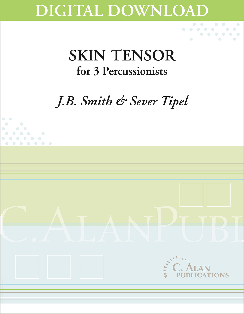 Fascinating composition with constantly shifting roles among the three players. Dynamics are indicated by the size of notehead as opposed to traditional dynamic notation. Rim shots are indicated by accents. Accents are passed from player to player in a constantly evolving whirlwind of sixteenth notes and syncopation.