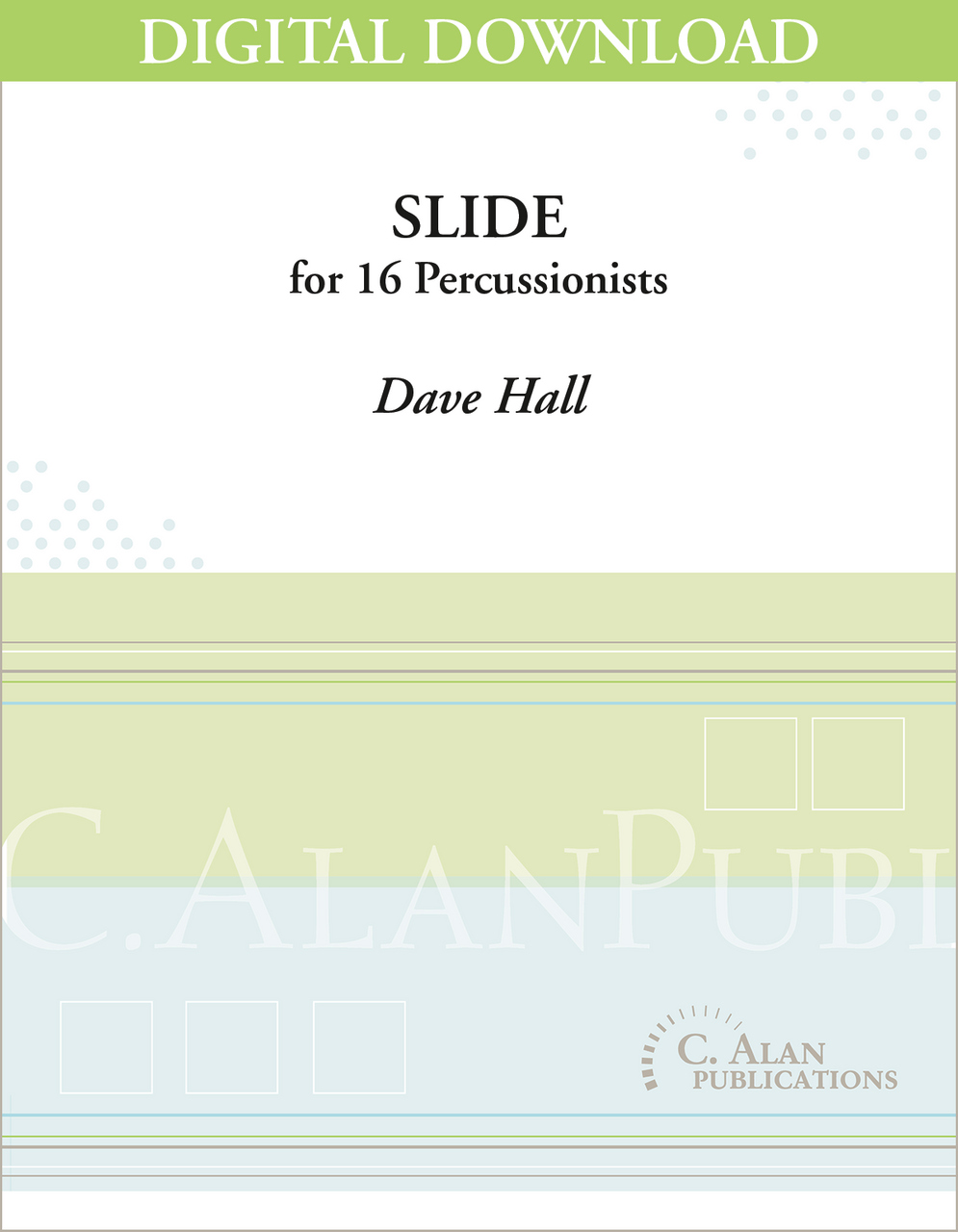 Slide is dedicated to my three children Ariadne, Emily, and Porter; and composed for my “other kids”: the 2016 UNL Percussion Ensemble for their showcase concert at the 2016 Percussive Arts Society International Convention.