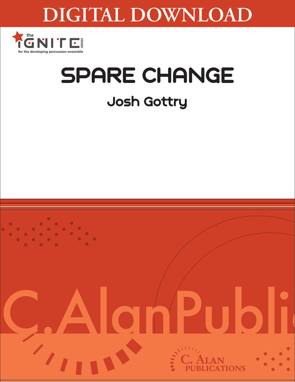 Spare Change was written specifically for the C. Alan Publications Ignite Series which features entertaining yet flexible pieces for young percussion ensembles. This piece is based on George Gershwin’s Rhythm Changes, opening with a 4-bar groove introduction, followed by two complete choruses of the standard 32-bar form. The xylophone part features the melodic material with the bells overlaying a harmonically-based descant. The marimba and timpani carry the bass line and chord changes and the percussion parts are reasonably repetitive, allowing the ensemble to lock into a solid underlying groove. The “rhythm section” does get a little feature time, however, at the start of the second chorus.
