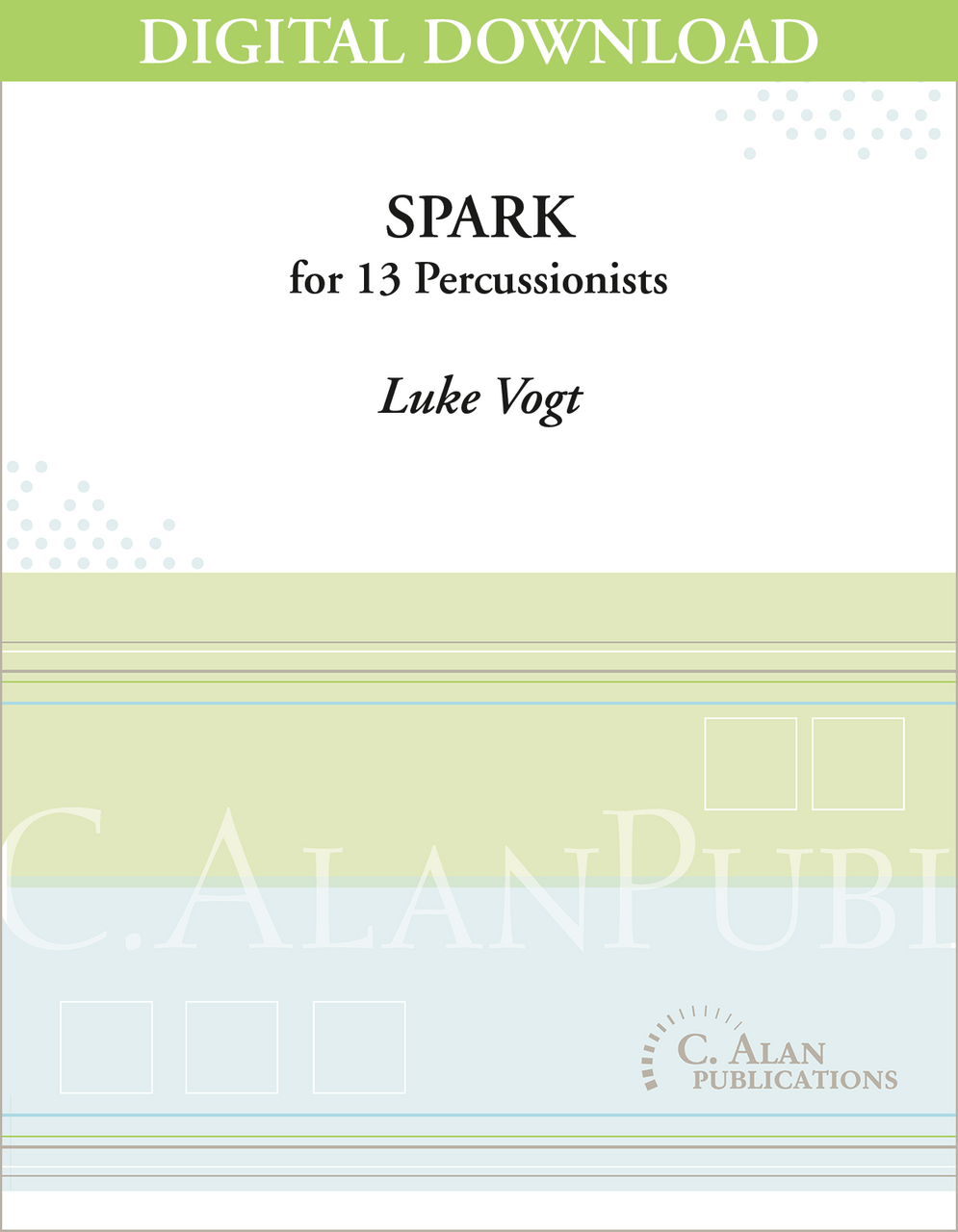 Spark is an exciting and sophisticated work for large percussion ensemble. Based on the concept of exponential expansion, Spark takes the listener through a constantly transforming journey of a simple melodic theme.