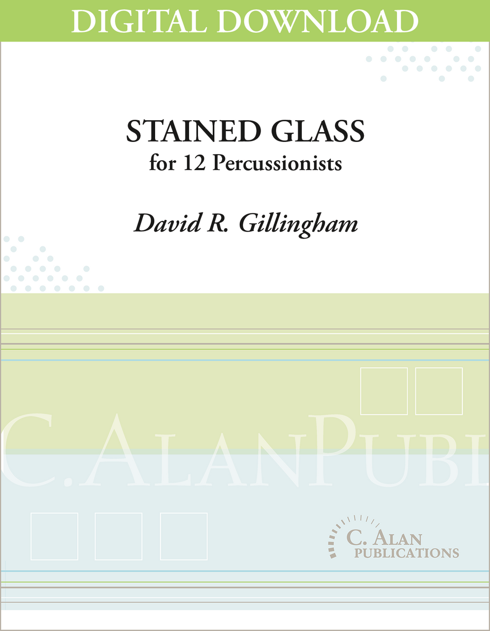 Stained Glass is a work for percussion ensemble inspired by the beauty and color of stained glass. The work is cast in three continuous movements. The first movement, Foyers, is so named because of its reference to the many variations of stained glass found in the entrances of dwellings. As doorways lead to the main living areas of homes, so does this movement serve as a sort of 'prelude' leading to the other two movements. The second movement bears the title Cathedrals and seeks to create the mysteriousness and grandeur of the many great cathedrals of the world which are laden with a multitude of stained glass. The final movement, Sun Catchers, begins joyously in the bright key of E major. If one can imagine all the radiant colors which are reflected by a variety of multicolored sun catchers, then a mind set for this movement can be achieved." An absolute classic you should not overlook!