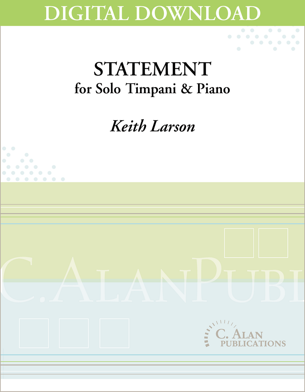 Statement was composed for Timpani and Wind Ensemble originally. It features both the melodic and rhythmic characteristics of timpani with a recurring theme woven throughout the work. The piece is approachable by both high school and college students.