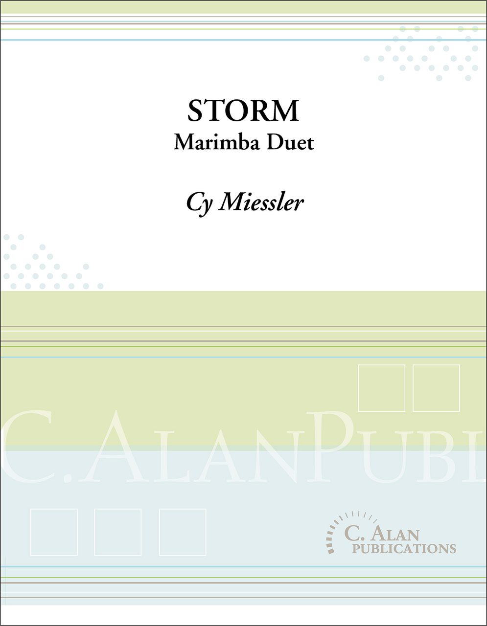 Storm is a 3-movement marimba duet meant to evoke the aesthetic of experiencing a storm. The first movement, Approach, alternates between two ideas: an aggressive and chromatic rhythmic motive performed in octaves meant to represent the lingering anxiety of knowing that a storm is approaching, and a more beautiful and melodic motive that shows the optimistic but still worrisome side of preparing for a storm. The second movement, Storm, is aggressive and heavily chromatic, emulating the chaos and violence of a storm. The finale, Calm, is a tonal chorale consisting of drones and slow moving lines, evoking the feeling of the calm after the storm. Each movement consists of a recurring chord progression, creating a sense of stability and survival even when a storm is raging.