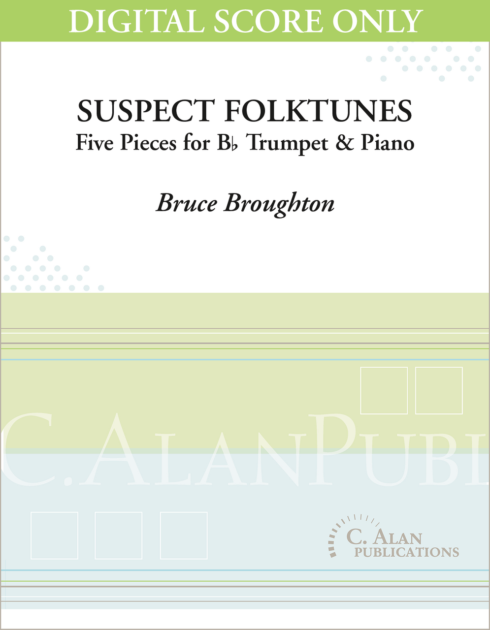 Suspect Folktunes is a set of five pieces for trumpet and piano based upon tunes which may or may not be folk tunes. They are tunes that could have come from different cultures, all of which could have words, even as they all have titles. Or not. The tunes are lyrical, traditional in style and almost familiar.