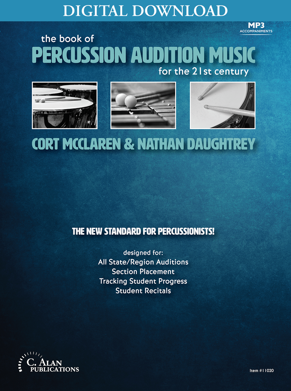 The Book of Percussion Audition Music for the 21st Century is designed for multiple purposes. The book is ideal for evaluating local, regional, and all-state percussion auditions. High-caliber musical examples also serve as material for tracking student progress. Use this book in tandem with recommended supplementary material to develop percussionists’ skills for today’s challenging musical world. Since demonstrating above-average performance skills on all basic percussion instruments is important for young players, the authors developed an ideal audition scenario illustrated in the Evaluation Form. The audition scenario requires skills on basic percussion instruments while allowing for specialization. Use this unique book to enhance the type of musical intelligence expected from today’s percussionist.