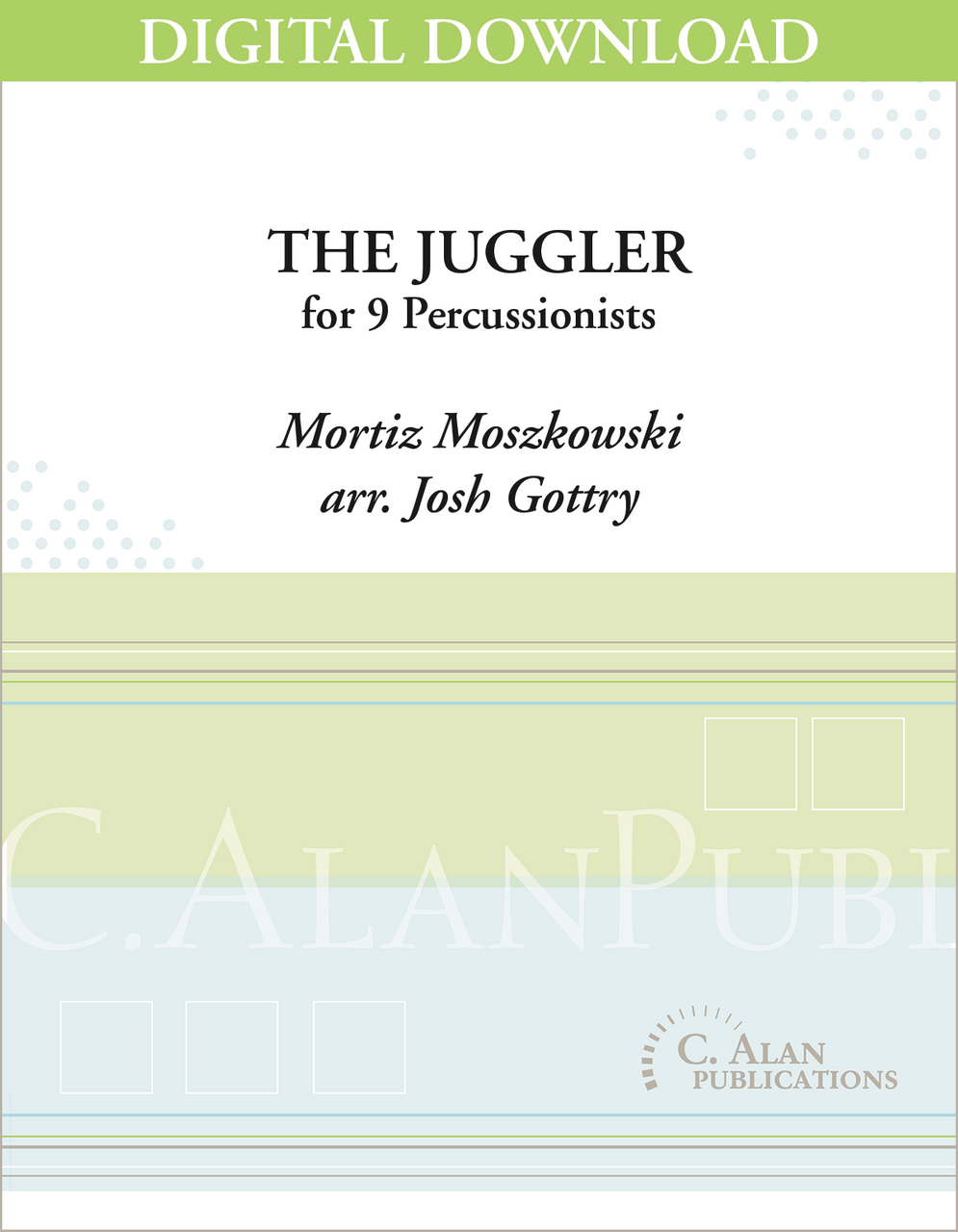 An entertaining work originally for piano, this arrangement maintains the same form as the original in its scoring for percussion ensemble. Written for xylophone, vibraphone, 4 marimbas (playable on 2 instruments), triangle, tambourine, bass drum, and crash cymbals, it is an excellent piece for an intermediate to advanced high school percussion ensemble.