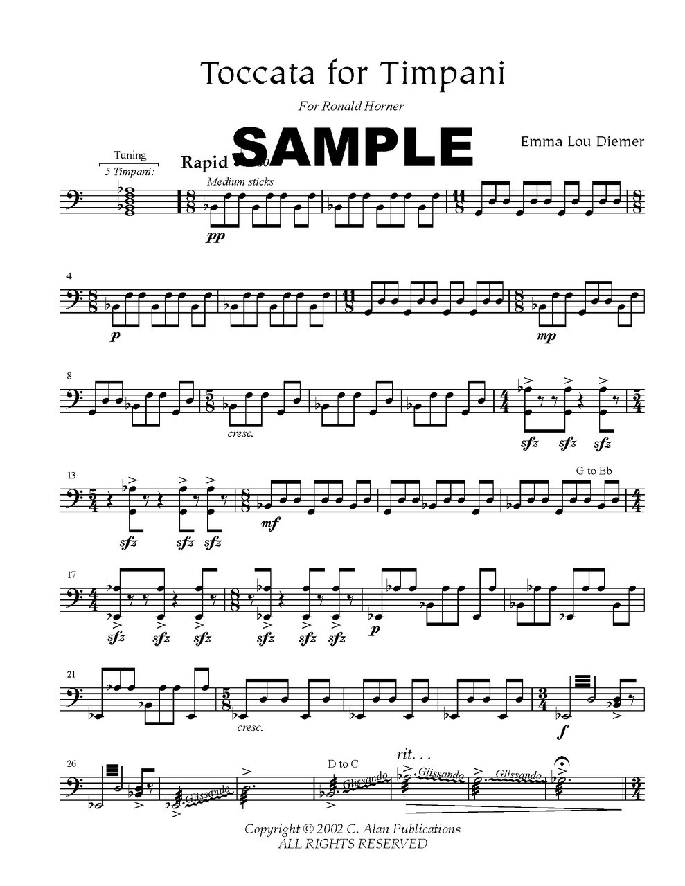 Utilizing several pitch changes, this is a virtuosic and challenging tour-de-force for solo timpani.