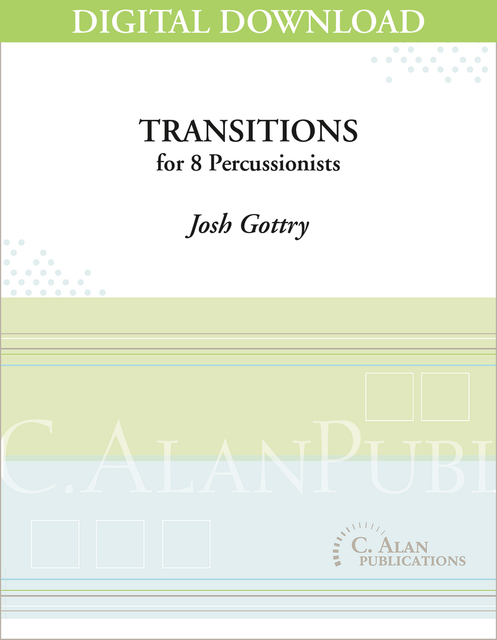 The concept behind Transitions is that of a single day and the gradual shifts and changes within it. There are three distinct but related segments in the piece in a slow-fast-slow format of uninterrupted movements entitled Dawn, Day, and Dusk. Within the faster middle movement is a percussion cadenza. The melodic and harmonic content of Transitions is based almost entirely on the B half-whole octatonic scale. The opening pitches in the solo vibraphone form the primary motive of the work and bring continuity to the piece as a whole. After the first statement, this motive is immediately restated in the accompaniment, later used as punctuation tones in the cadenza, and finally restated in retrograde in the final measures of the work, again in the solo vibraphone, as an indication of the inevitable connection to the start of a new day. Transitions is truly an exciting and challenging work for the soloist including virtuosic material on both pitched and non-pitched percussion instruments. This work will captivate any audience with its musical contrasts and fascinate them with the visually stimulating choreography in the soloist's performance.