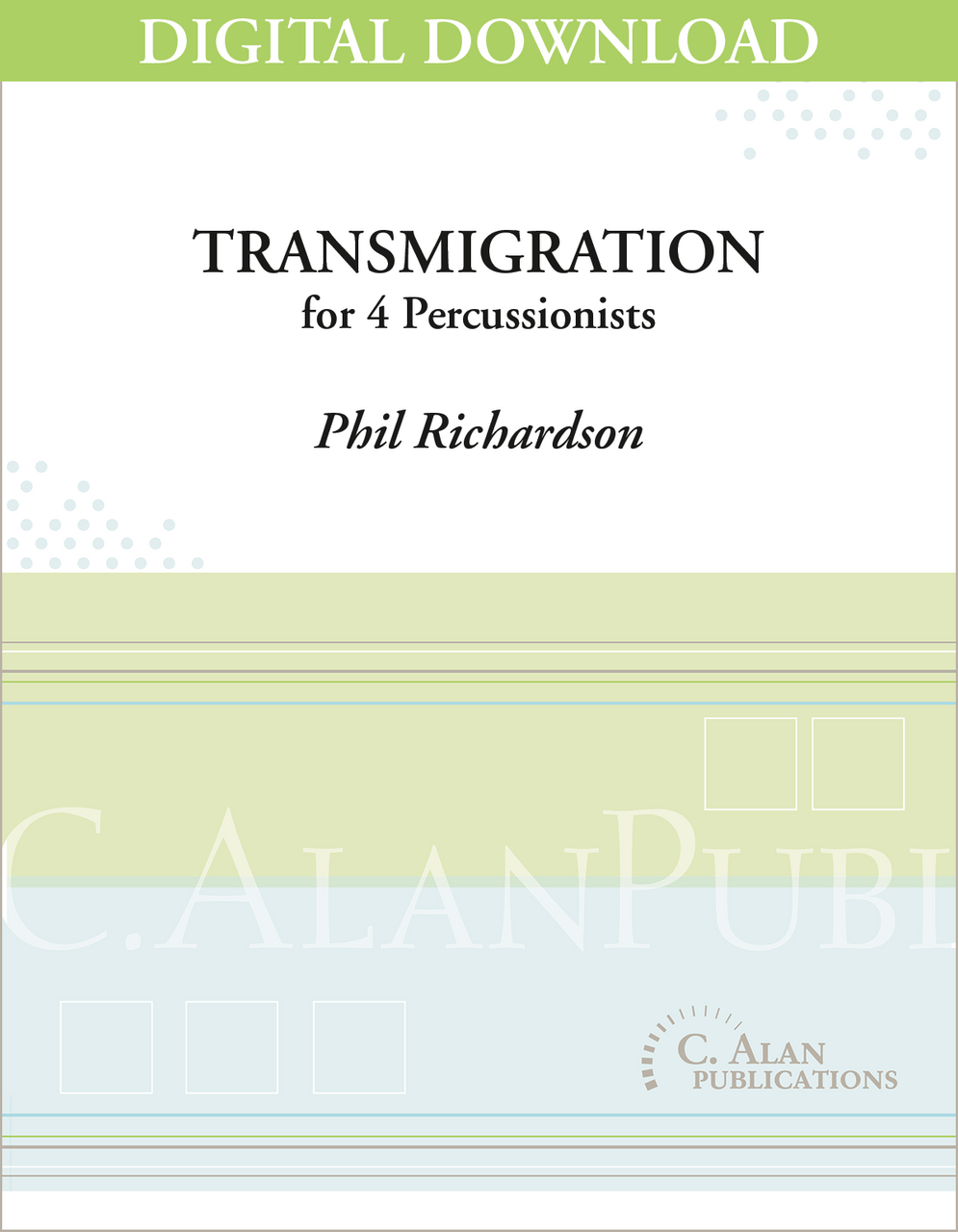 Transmigration is meant to exemplify the reflective nature of music, and its ability to (at least temporarily) transform us into rational beings. The melody is consistently divided amongst the four players. These layered entrances overlap, creating dense sonorities that highlight the resonant quality of the instrument.