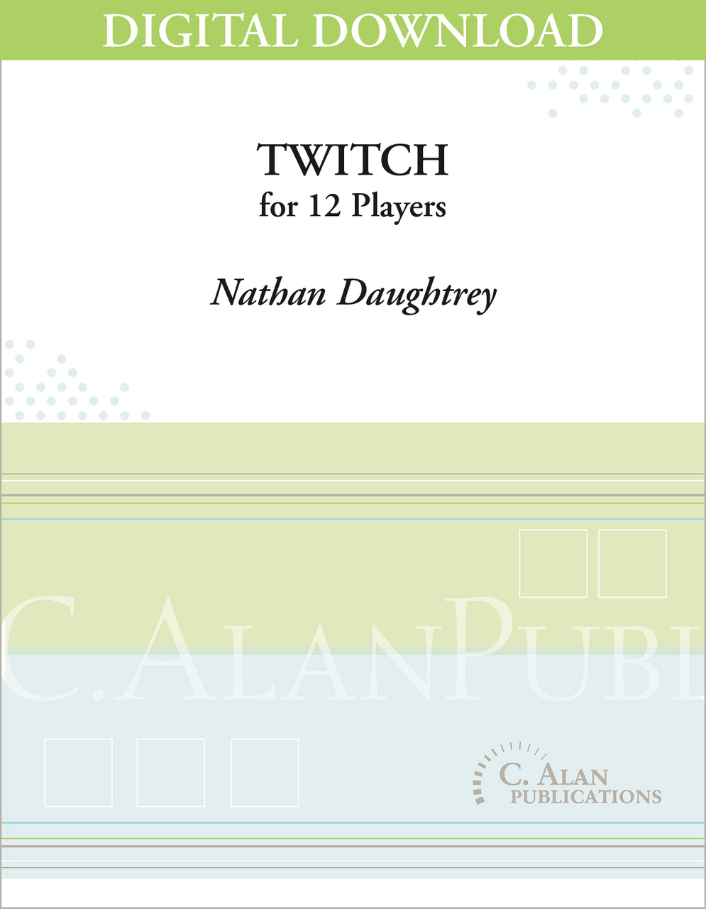 Originally written for solo clarinet and wind ensemble, Twitch was premiered at the 2016 Midwest Band & Orchestra Clinic. The excitement from beginning to end is palpable. Even in the calmer sections, fast, syncopated motives are thrown around the percussionensemble to keep the drive alive.