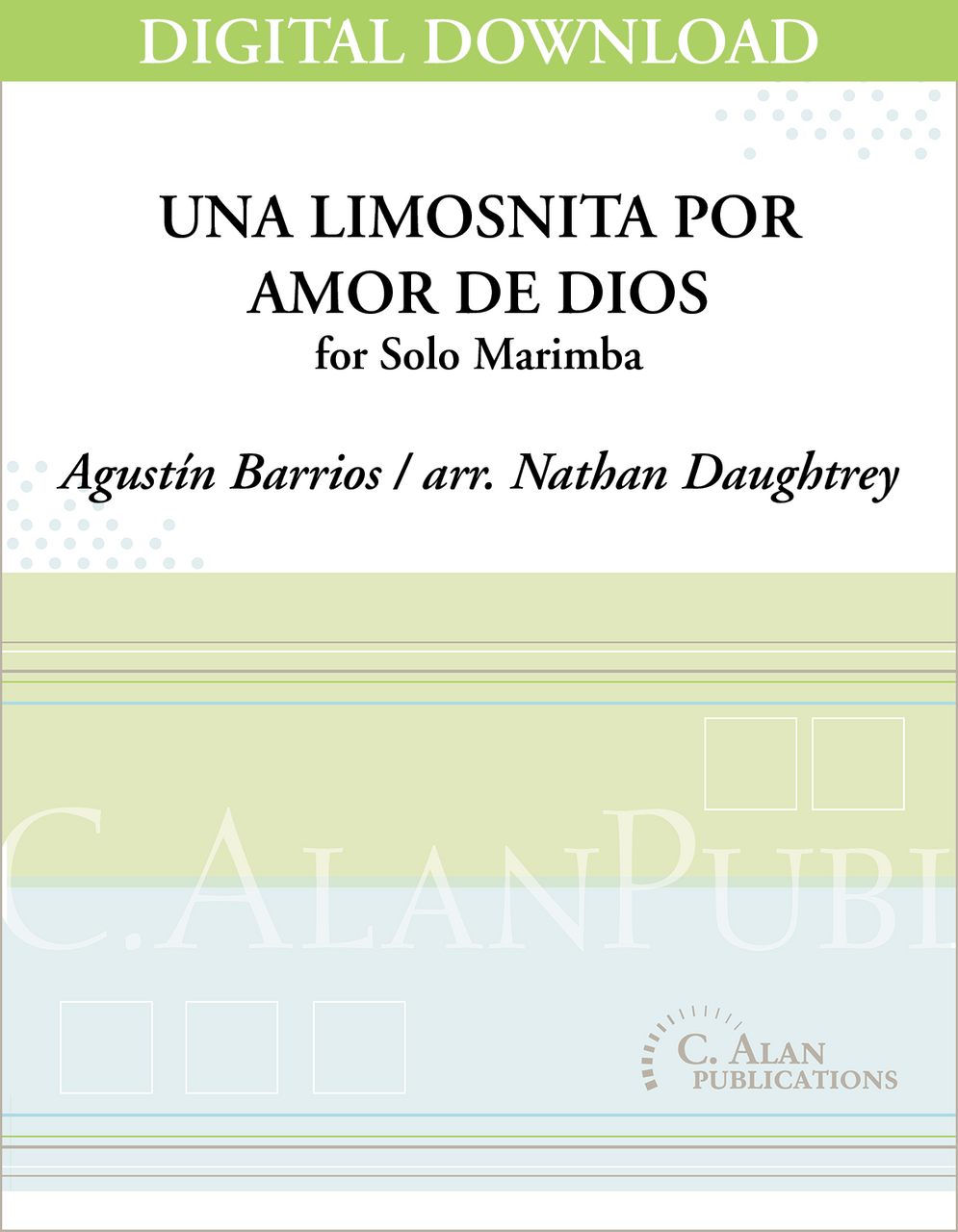 Barrios' final composition, Una Limosnita por Amor de Dios ("An Alm for the Love of God"), represents one of his religious works. The piece, subtitled "El Ultimo Tremolo," is a tremolo etude that places the soaring melody in the soprano voice and the persistent ostinato in the lower and middle voices. It is said that while Barrios was teaching a guitar lesson, a beggar came knocking at his door asking for money for food (thus the title of the piece). This knocking is emulated with the left hand ostinato throughout. The majority of the piece centers on the key of E Minor but moves into E Major toward the end. During the compositional process, Barrios knew his end was near. This shift in tonality symbolizes the acceptance of, and peace with, his death. After this final composition, Barrios spent his remaining days in tranquility, solace and meditation.