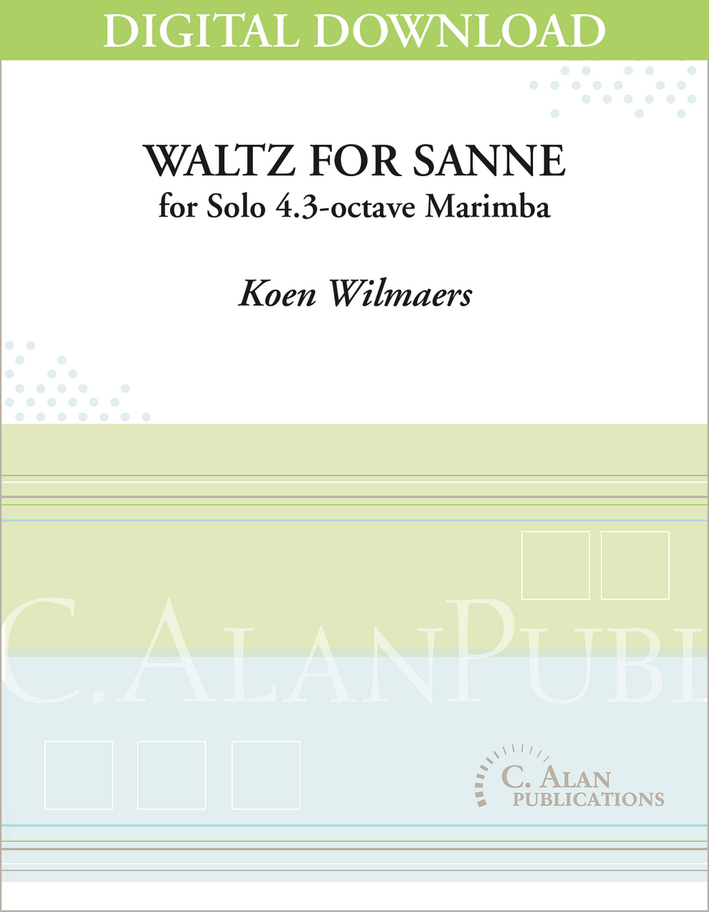 Written for the composer's wife, Waltz for Sanne is a very accessible solo which gives the player a chance to show off their four-mallet technique. This is a great piece for a recital, especially as an encore!