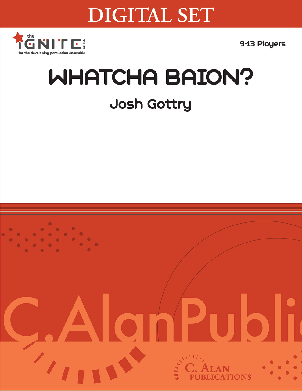 Whatcha Baion? is designed to be a flexible composition for early percussion programs or schools that desire to introduce students to percussion ensemble. It opens with a 2/3 clave, systematically layers additional percussion voices on top, and establishes an audience-friendly groove before jumping into a tuneful keyboard melody in the traditional baion style from Northeastern Brazil. Following a brief percussion break and an abbreviated layering of the groove, the tune returns and leads into an impactful ensemble ending. The piece can be performed with a range of players and uses instruments commonly found in a school band room.