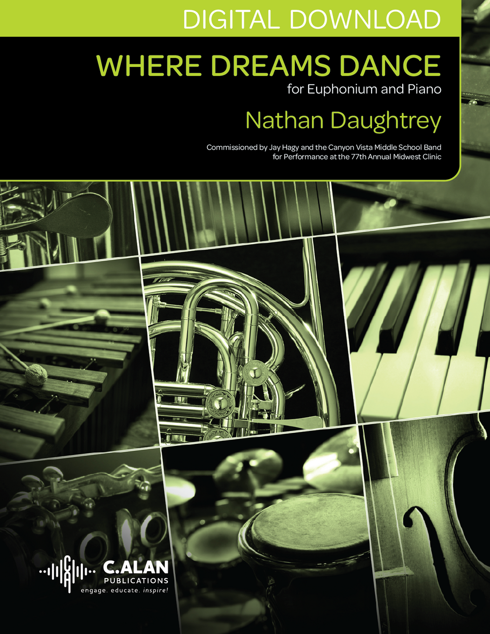 Commissioned by Jay Hagy and the Canyon Vista Middle School Band for their performance at the 77th Annual Midwest Clinic, Where Dreams Dance was inspired by a poem by Dr. Antony Theodore titled “There is a Land Where Dreams Dance.” The opening stanzas may be found below. The piece begins simply enough with the solo euphonium stating the main theme from which all other thematic material is derived. What follows are three variations, each accompanied by a different section of the ensemble – first the dark & driving percussionists, followed by the warm & reverent brass leading us out of the darkness, to the gently flowing woodwinds leading us into the light. The tutti finale of the work features a brighter tempo, with the saxes and upper brass echoing the main theme while the soloist pieces together other motives heard throughout the piece in virtuosic flourishes, driving to a dramatic conclusion.