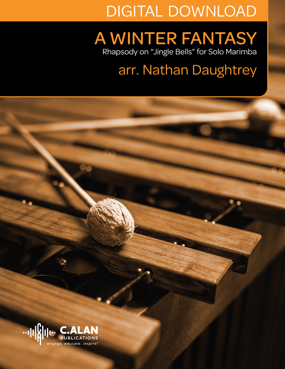 A Winter Fantasy originally appeared on Nathan Daughtrey’s Christmas album “The Yuletide Marimba” as “A Winter Prelude” (solo marimba) and “A Winter Postlude” (marimba quartet). Both arrangements featured different parts and moods of “Jingle Bells.” Both arrangements have now been combined for solo 5-octave marimba. Optional cuts are included to feature one or both of the styles/moods.
