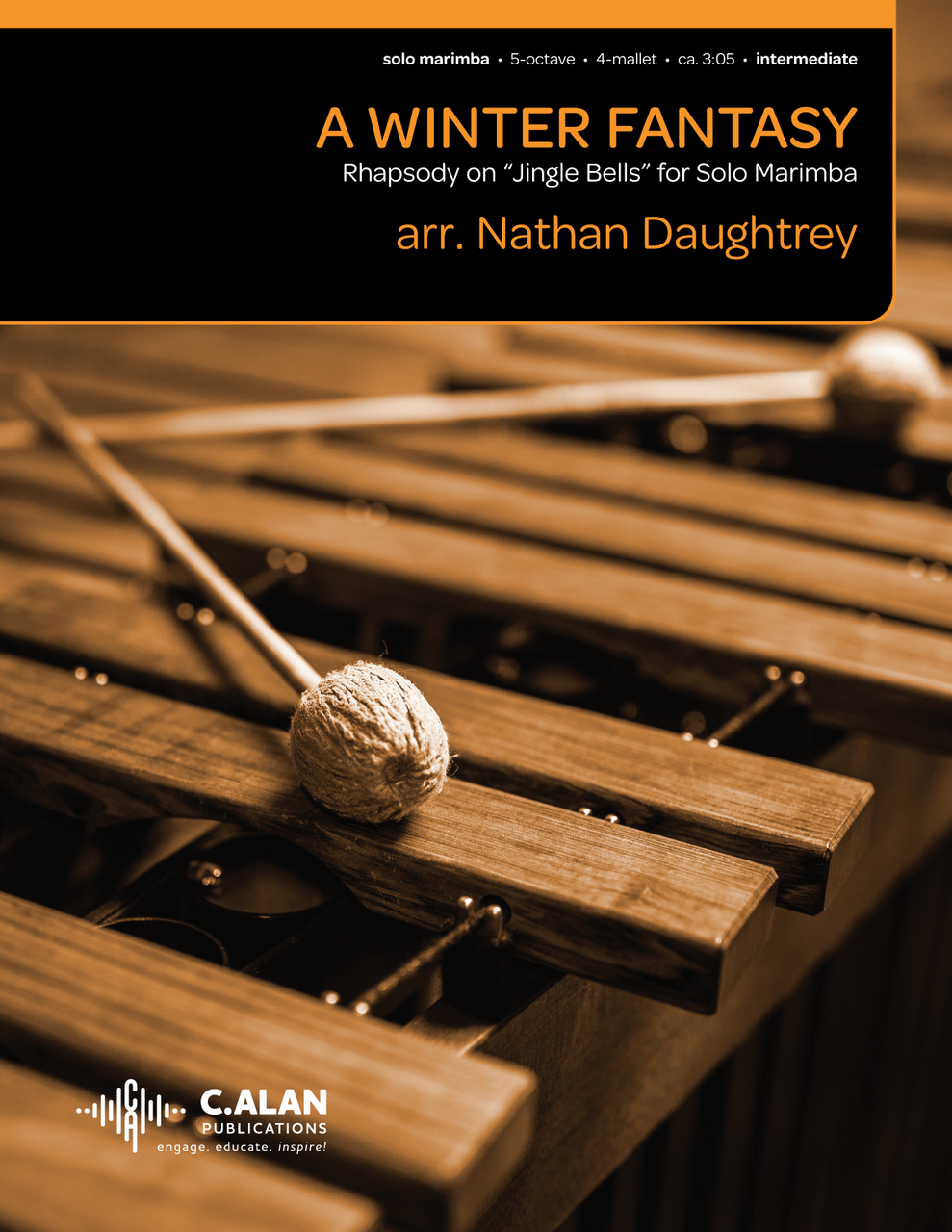 A Winter Fantasy originally appeared on Nathan Daughtrey’s Christmas album “The Yuletide Marimba” as “A Winter Prelude” (solo marimba) and “A Winter Postlude” (marimba quartet). Both arrangements featured different parts and moods of “Jingle Bells.” Both arrangements have now been combined for solo 5-octave marimba. Optional cuts are included to feature one or both of the styles/moods.
