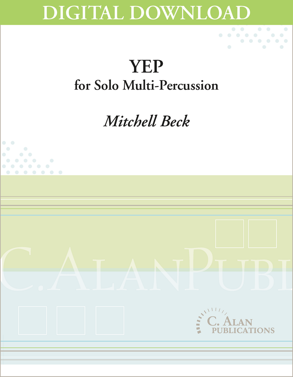 "Yep" is a quick and disorienting multi-percussion exploration through a wide variety of emotions and musical styles. From intensely aggressive to reserved and delicate and many stops in between, Yep is meant to leave you a bit disoriented, but also pensive about the balance between contrasting emotions and musical styles. http://c-alanpublications.com/yep/